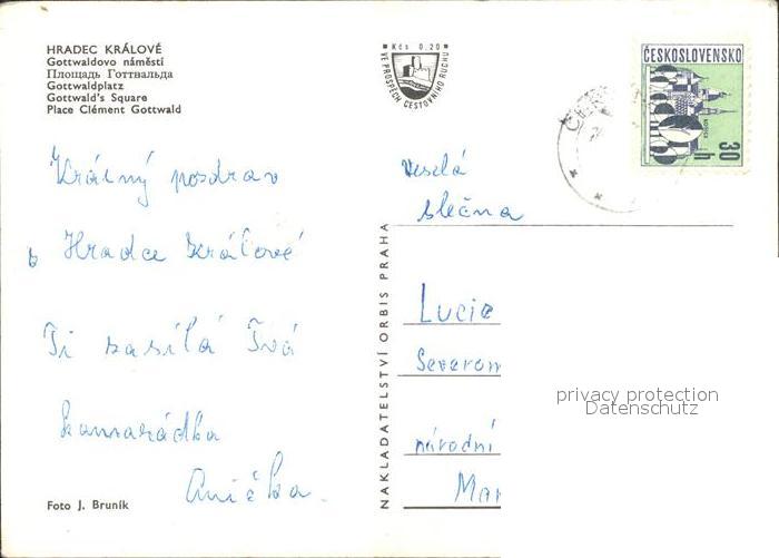 old postcard Kralovehradecko Hradec Kralove Gottwaldovo namesti postalisch gelaufen Erhaltung siehe scans