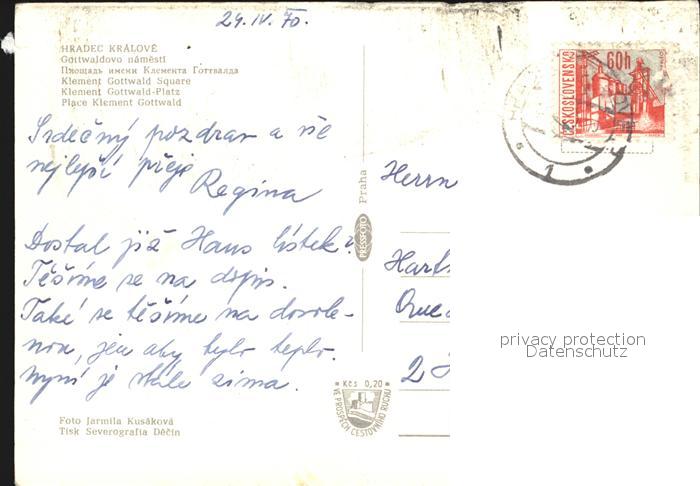 old postcard Kralovehradecko Hradec Kralove Gottwaldovo namesti postalisch gelaufen Erhaltung siehe scans