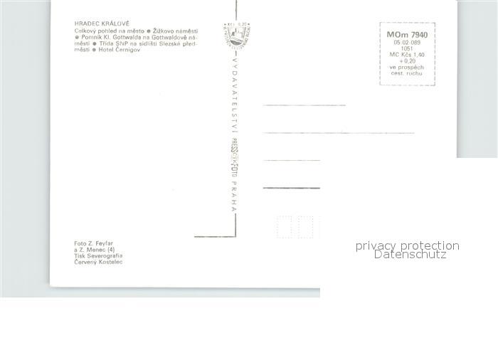 Kralovehradecko Hradec Kralove Hotel Carnigov Stadtansicht Denkmal postalisch nicht gelaufen Erhaltung siehe scans