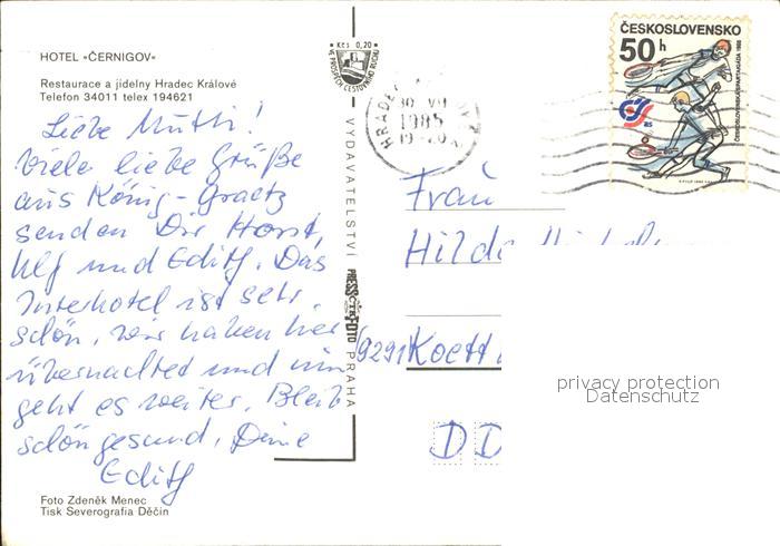 old postcard Kralovehradecko Hradec Kralove Hotel Cernigov postalisch gelaufen Erhaltung siehe scans