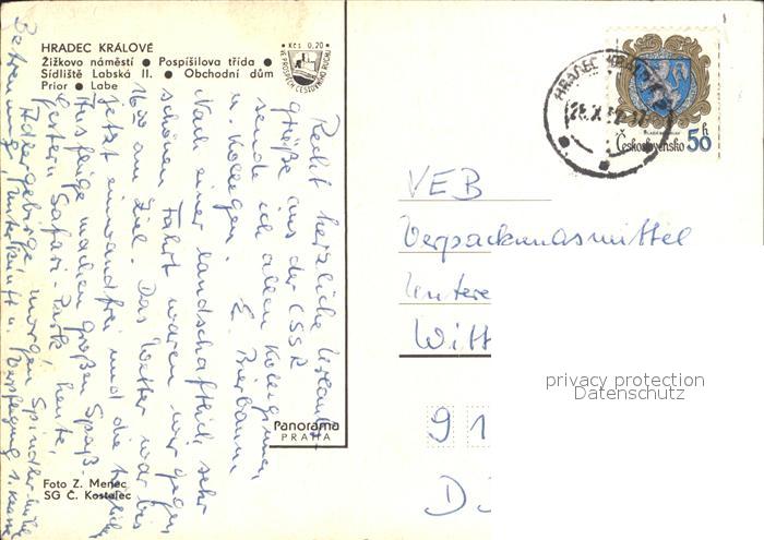old postcard Kralovehradecko Hradec Kralove Kirchen Neubaugebiet Prior Labe postalisch gelaufen Erhaltung siehe scans