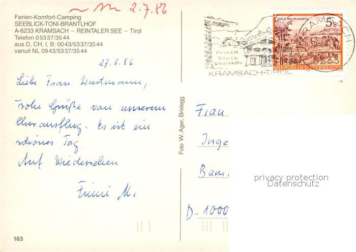 73323844 alte Postkarte Kramsach Camping Seeblick Toni Brantlhof postalisch gelaufen Erhaltung siehe scans [WerneD78] KatCode: 11390335070512