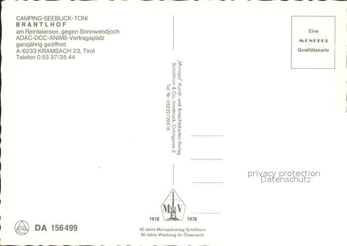 72034379 Kramsach Camping Seeblick Toni postalisch nicht gelaufen Erhaltung siehe scans KatCode: 11390335070512