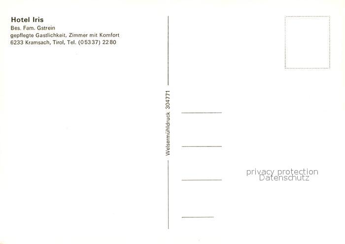 73587023 Kramsach Hotel Iris postalisch nicht gelaufen Erhaltung siehe scans [PaolaD17] KatCode: 11390335070512