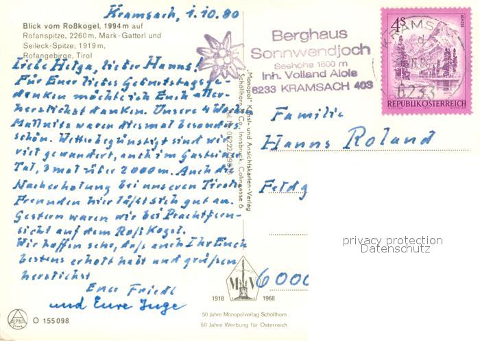 73625973 alte Postkarte Kramsach Rofanspitze Mark Gatterl und Seileck Spitze Rofangebirge postalisch gelaufen Erhaltung siehe scans [FriedD77] KatCode: 11390335070512