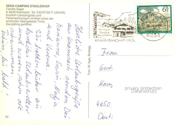 13588564 alte Postkarte Kramsach Seen Camping Stadlerhof postalisch gelaufen Erhaltung siehe scans [LiesaD40] KatCode: 11390335070512