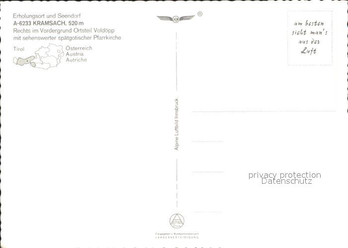 71899745 Kramsach Voldoepp spaetgotische Pfarrkirche Sonnwendjoch Bergbahn Wappen Fliegeraufnahme postalisch nicht gelaufen Erhaltung siehe scans KatCode: 11390335070512