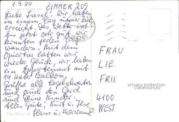 old postcard Kranjska Gora Hotel Larix postalisch gelaufen Erhaltung siehe scans
