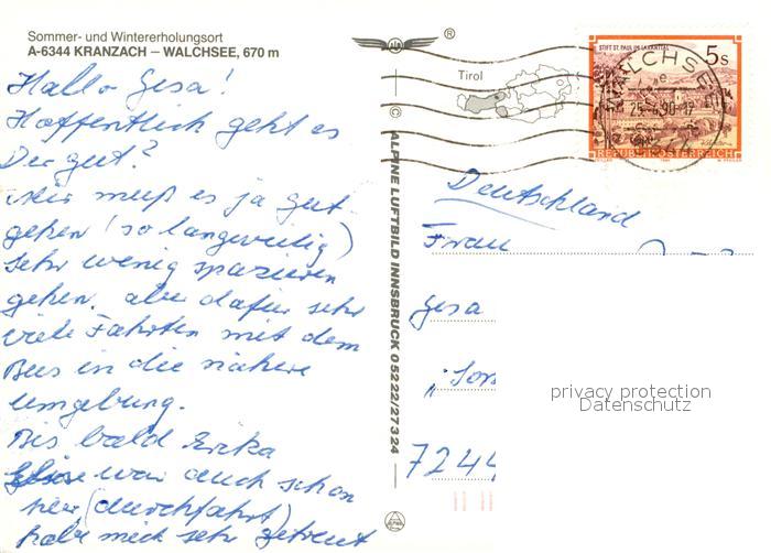 73611155 alte Postkarte Kranzach Fliegeraufnahme mit Walchsee postalisch gelaufen Erhaltung siehe scans [WerneD78] KatCode: 11390335070529