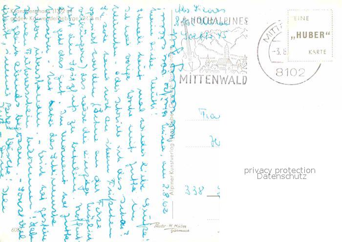 72863549 alte Postkarte Kranzberghaus gegen Karwendelgebirge postalisch gelaufen Erhaltung siehe scans [FriedD77] KatCode: 11390335070926