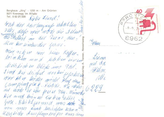 73880906 alte Postkarte Kranzegg Berghaus Joerg Gruentenbahn Schwimmbad Gruentengipfel Allgaeuer Alpvieh Alphornblaeser postalisch gelaufen Erhaltung siehe scans [FriedD77] KatCode: 11110009780137