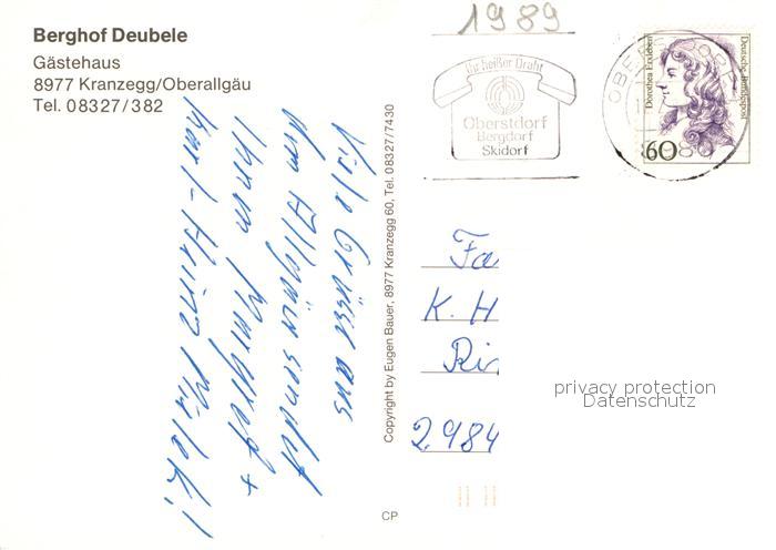 72932223 alte Postkarte Kranzegg Berghof Deubele Gaestehaus postalisch gelaufen Erhaltung siehe scans [LiesaD40] KatCode: 11110009780137