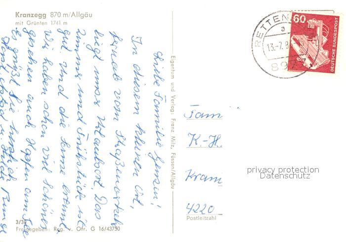 73541027 alte Postkarte Kranzegg Fliegeraufnahme mit Gruenten postalisch gelaufen Erhaltung siehe scans [WerneD78] KatCode: 11110009780137