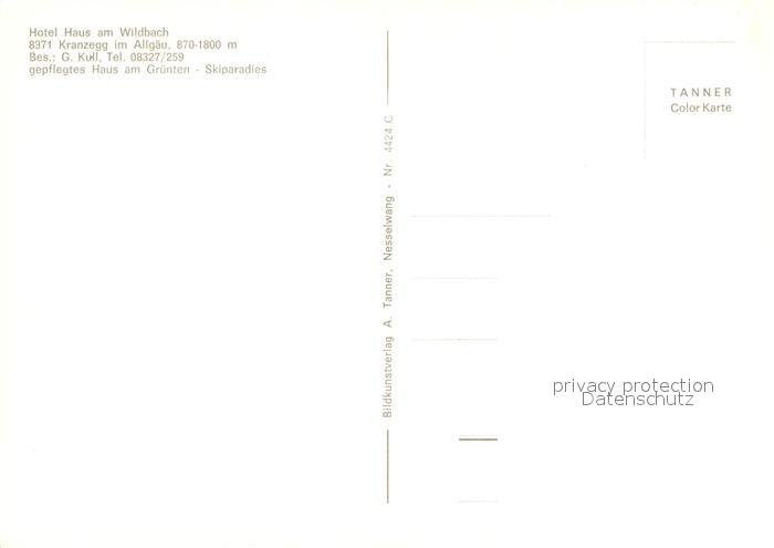 73688494 Kranzegg Hotel Haus am Wildbach postalisch nicht gelaufen Erhaltung siehe scans [WerneD78] KatCode: 11110009780137