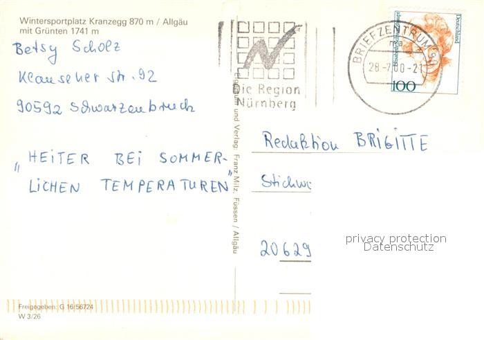 73687697 alte Postkarte Kranzegg Wintersportplatz mit Gruenten Allgaeuer Alpen Fliegeraufnahme postalisch gelaufen Erhaltung siehe scans [FriedD77] KatCode: 11110009780137