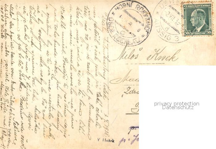 old postcard Krasne Brezno Schoenpriessen Cedicova skala Basaltfelsen Baumbluete postalisch gelaufen Erhaltung siehe scans [FriedD77]