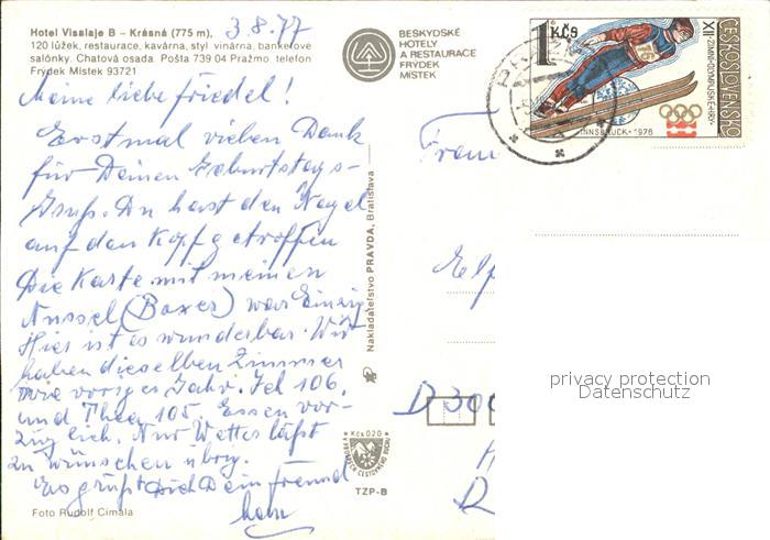 old postcard Krasne Brezno Schoenpriessen Hotel Visalaje postalisch gelaufen Erhaltung siehe scans