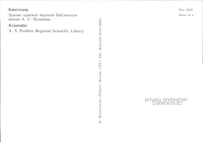 Krasnodar A S Pushkin Regional Scientifie Library postalisch nicht gelaufen Erhaltung siehe scans