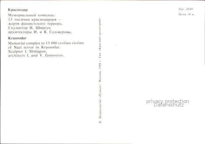 Krasnodar Memorial complex to 13000 civilian victims Nazi terror postalisch nicht gelaufen Erhaltung siehe scans