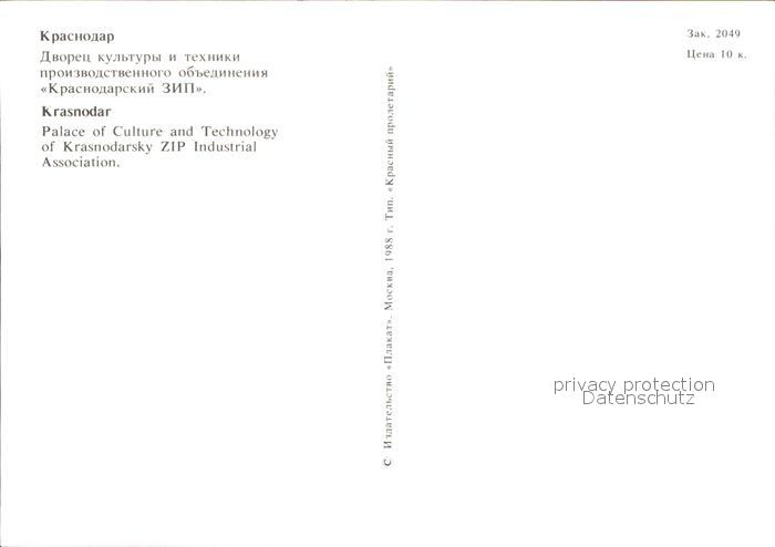 Krasnodar Palace Culture Technology Krasnodarsky ZIP Industrial Association postalisch nicht gelaufen Erhaltung siehe scans