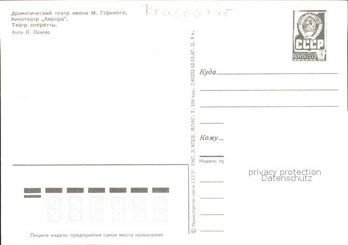 Krasnodar Theater Gorkij postalisch nicht gelaufen Ganzsache (eingedruckte Briefmarke) Erhaltung siehe scans