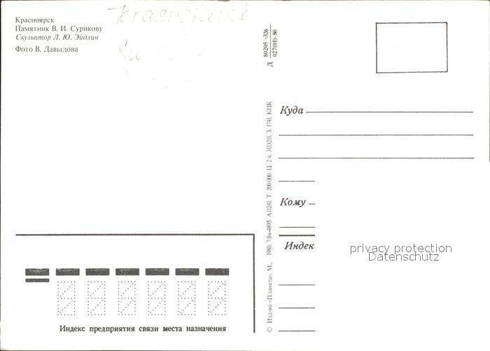Krasnojarsk Surikov Denkmal postalisch nicht gelaufen Erhaltung siehe scans