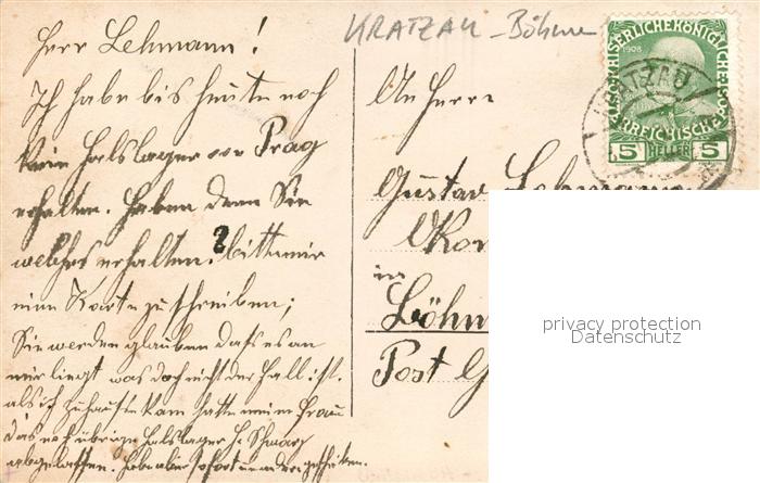 33546105 old postcard Kratzau Boehmen Wohnhaus postalisch gelaufen Erhaltung siehe scans [LiesaD40] KatCode: 11520