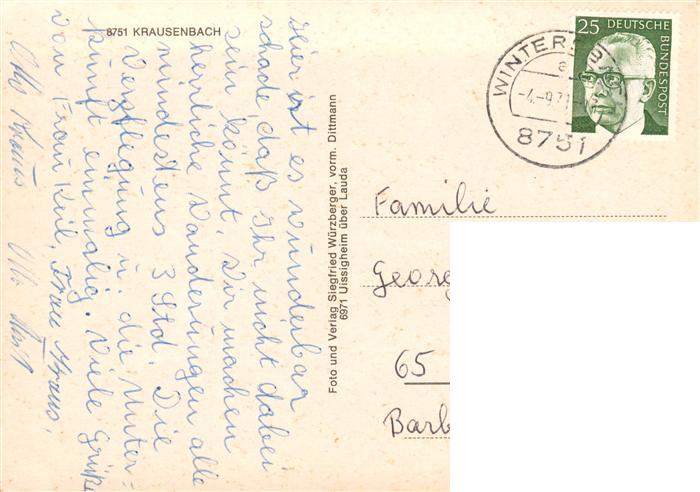 73871367 alte Postkarte Krausenbach Dammbach Teilansichten Panorama postalisch gelaufen Erhaltung siehe scans [WerneD78] KatCode: 11110009671160