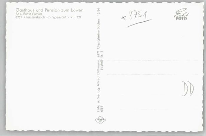 40245718 Krausenbach Gasthaus Pension Loewen Postalisch nicht gelaufen Alte Ansichtskarte Postkarte Katcode 11110009671160