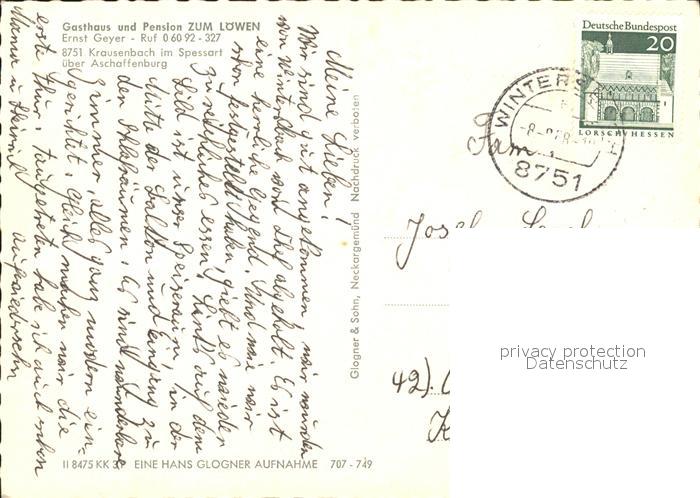 71831478 alte Postkarte Krausenbach Gasthaus Pension Zum Loewen Details Ortsansicht postalisch gelaufen Erhaltung siehe scans KatCode: 11110009671160