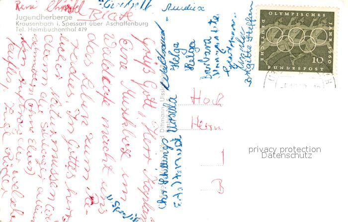 73370520 alte Postkarte Krausenbach Schnatterloch Miltenberg Schloss Mespelbrunn Jugendherberge postalisch gelaufen Erhaltung siehe scans [KathaD81] KatCode: 11110009671160