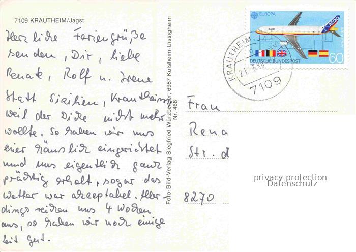 74156465 alte Postkarte Krautheim Jagst Hohenlohekreis BW Kirche Burg-Krautheim Burgruine Gotik Jagst Fachwerkturm Stadtansicht Mehrbildkarte postalisch gelaufen Erhaltung siehe scans [Karloger] KatCode: 11110008126045
