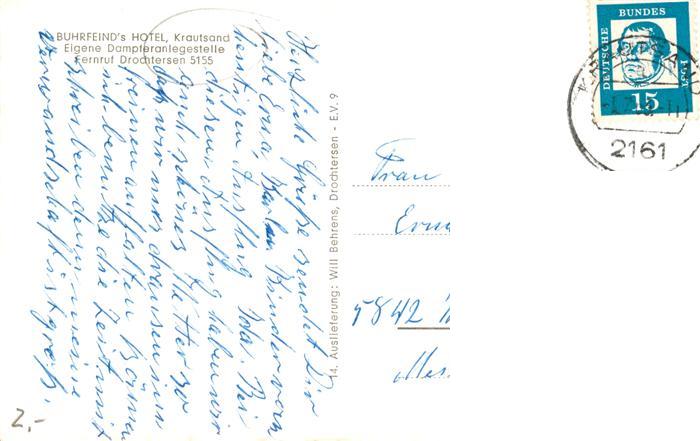 73970733 alte Postkarte Krautsand Drochtersen Niedersachsen Buhrfeinds Hotel Dampferanlegestelle postalisch gelaufen Erhaltung siehe scans [FriedD77] KatCode: 11110003359013