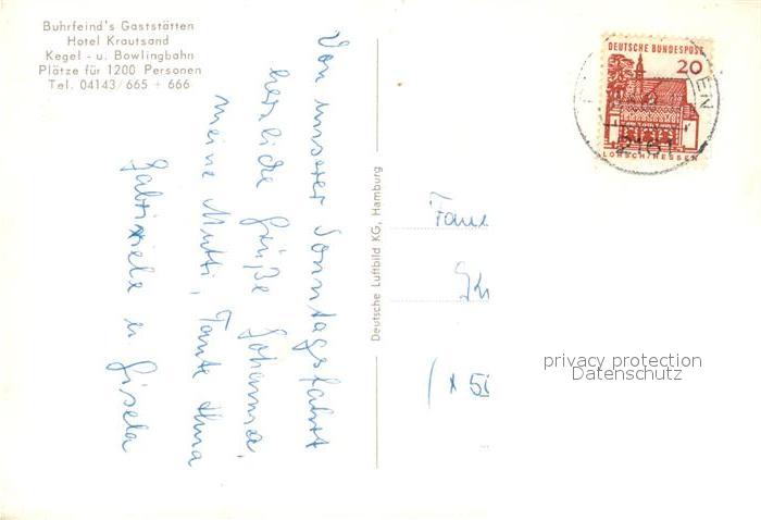 73056770 alte Postkarte Krautsand Hotel Krautsand Buhrfeinds Gaststaetten postalisch gelaufen Erhaltung siehe scans [NatalD47] KatCode: 11110003359013