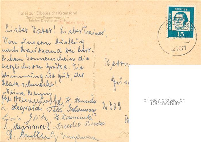 73666482 alte Postkarte Krautsand Hotel zur Elbaussicht Fliegeraufnahme postalisch gelaufen Erhaltung siehe scans [WerneD78] KatCode: 11110003359013