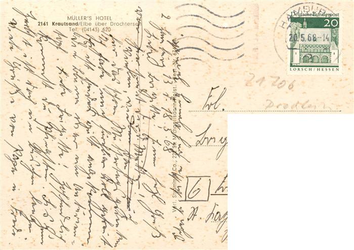 73870634 alte Postkarte Krautsand Partie an der Elbe Hotel Gasthof Turm postalisch gelaufen Erhaltung siehe scans [FriedD77] KatCode: 11110003359013