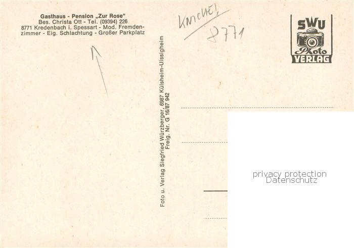 73758589 Kredenbach Unterfranken Fliegeraufnahme Gasthaus Zur Rose Gastraum Theke postalisch nicht gelaufen Erhaltung siehe scans [FriedD77] KatCode: 11110009677126