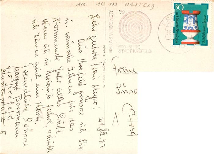 73899135 alte Postkarte Krefeld Crefeld Rheinbruecke Hauptbahnhof Partie im Stadtwald Ostwall postalisch gelaufen Erhaltung siehe scans [FriedD77] KatCode: 11110005114000