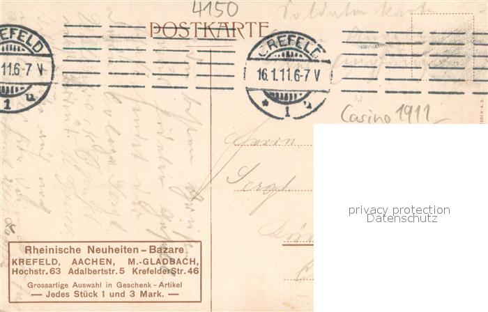 73749003 alte Postkarte Krefeld Rhein Offizier Casino postalisch gelaufen Erhaltung siehe scans [WerneD78] KatCode: 11110005114000