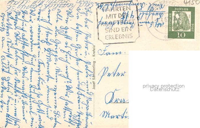 73693404 alte Postkarte Krefeld Rhein Ostwall Philadelphiahaus Hauptbahnhof Burg Linn Ingenieurschule Rheinstrasse Veerseidag postalisch gelaufen Erhaltung siehe scans [WerneD78] KatCode: 11110005114000
