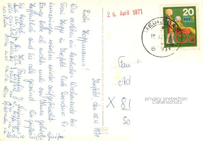73176443 alte Postkarte Krefeld Rheinbruecke Promenade Burg Linn Stadttheater Ostwall Wappen postalisch gelaufen Erhaltung siehe scans [FriedD77] KatCode: 11110005114000