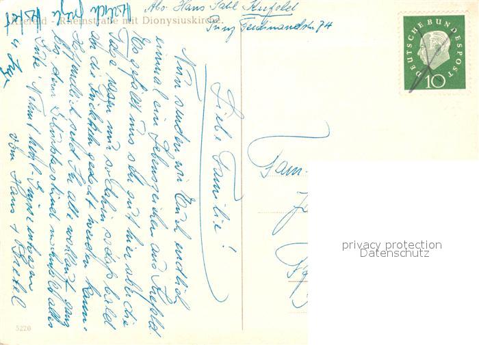 73251418 alte Postkarte Krefeld Rheinstrasse Dionysoskirche postalisch gelaufen Erhaltung siehe scans [KathaD81] KatCode: 11110005114000