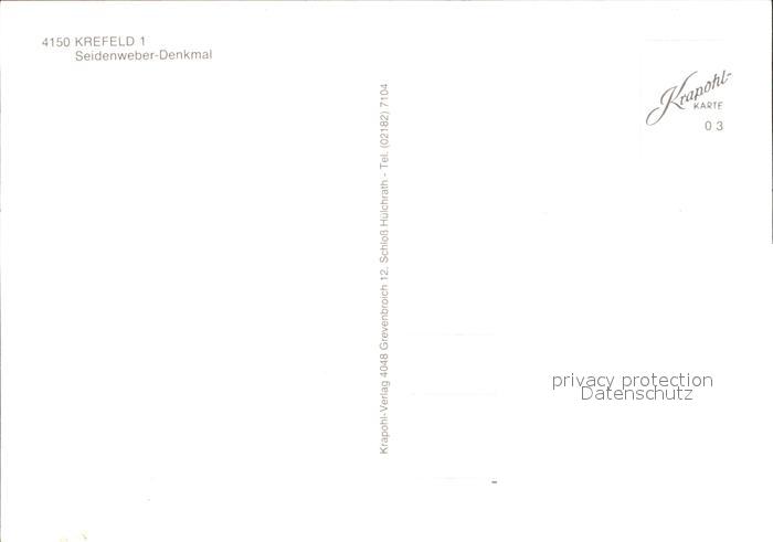 71935600 Krefeld Seidenweber Denkmal postalisch nicht gelaufen Erhaltung siehe scans KatCode: 11110005114000