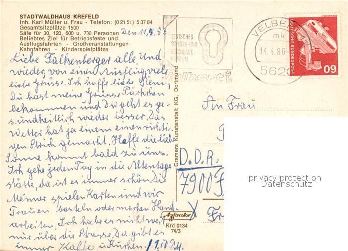 73660113 alte Postkarte Krefeld Stadtwaldhaus Restauration postalisch gelaufen Erhaltung siehe scans [FriedD77] KatCode: 11110005114000