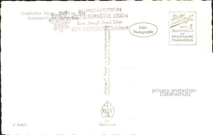 72253366 Krefelder Huette mit Kitzsteinhorn postalisch nicht gelaufen Erhaltung siehe scans KatCode: 11390322050606