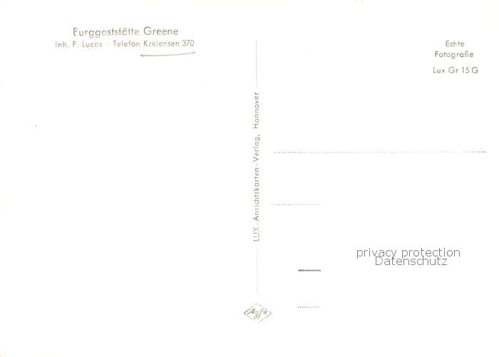 73784576 Kreiensen Burggaststaette Greene m. Burg Greene – Terrasse postalisch nicht gelaufen Erhaltung siehe scans [LiesaD40] KatCode: 11110003155008
