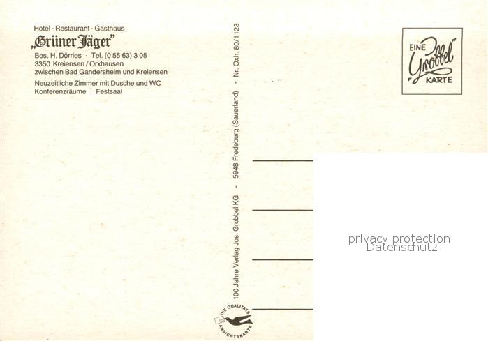 73725390 Kreiensen Hotel Restaurant Gruener Jaeger postalisch nicht gelaufen Erhaltung siehe scans [WerneD78] KatCode: 11110003155008