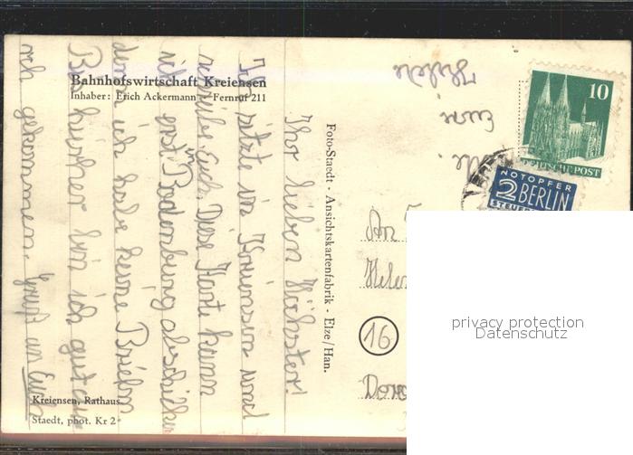 41988794 alte Postkarte Kreiensen Rathaus postalisch gelaufen Erhaltung siehe scans KatCode: 11110003155008