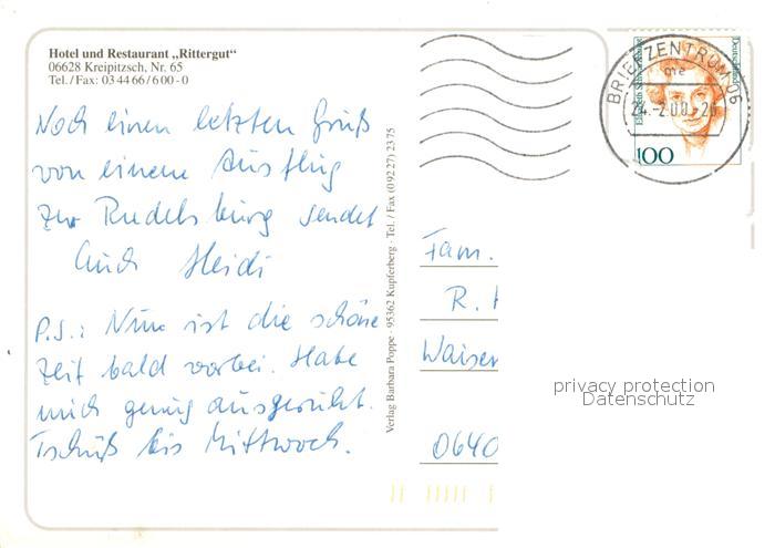 73644572 alte Postkarte Kreipitzsch Hotel Restaurant Rittergut Burgruine postalisch gelaufen Erhaltung siehe scans [FriedD77] KatCode: 11110015084085