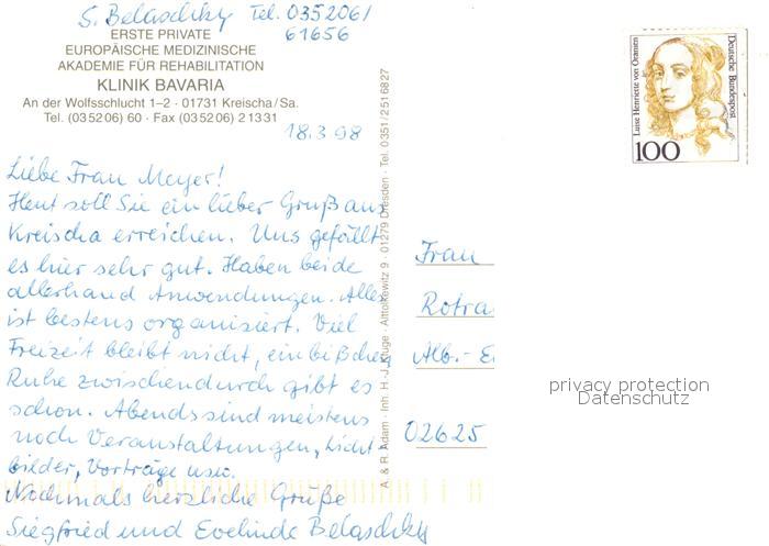73705356 alte Postkarte Kreischa Klinik Bavaria Rehabilitationszentrum postalisch gelaufen Fliegeraufnahme Erhaltung siehe scans [FriedD77] KatCode: 11110014290260